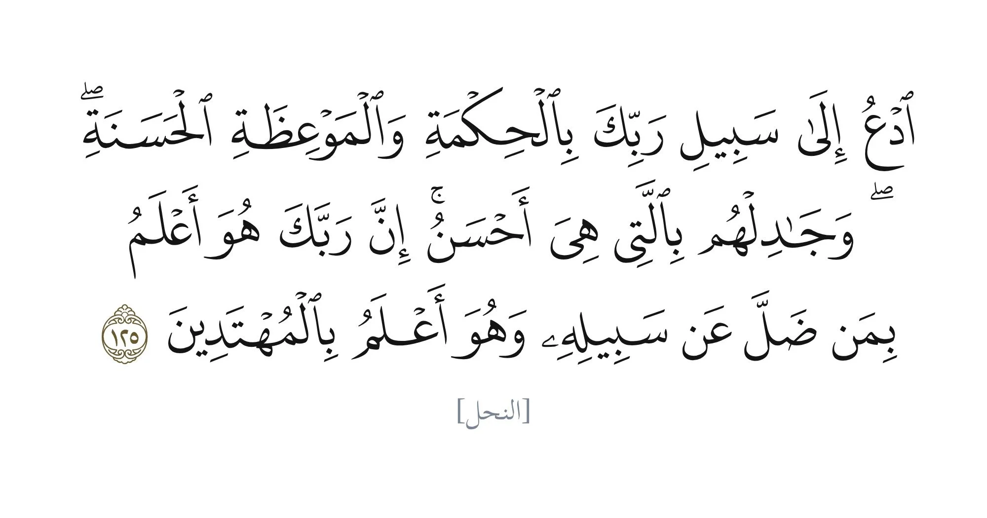 Invite ˹all˺ to the Way of your Lord with wisdom and kind advice, and only debate with them in the best manner. Surely your Lord ˹alone˺ knows best who has strayed from His Way and who is ˹rightly˺ guided. (Q: 16:125).